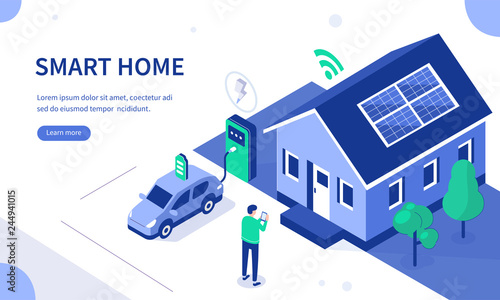 Smart house concept, Flat style banner design.