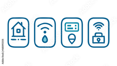 Colorful smart home icons featuring wi-fi symbols and house designs