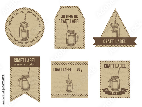 Craft labels vintage design with illustration of smothie jars