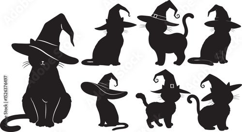 A collection of various cute cats, with cartoon hand-drawn vector illustrations
