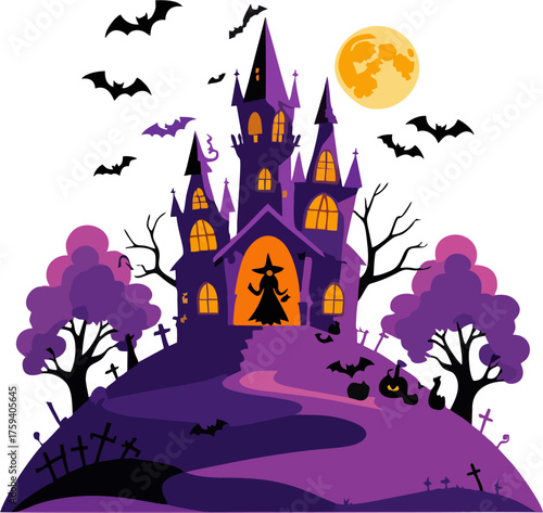 Advent calendar. Christmas pink house with winter holidays countdown windows. Merry Christmas poster. Holiday design, decor. Winter holiday Vector illustration