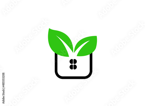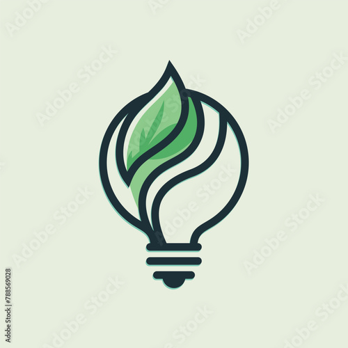 Lamp environmental light bulb with leaf logo. Eco world, green leaf, energy saving lamp symbol.