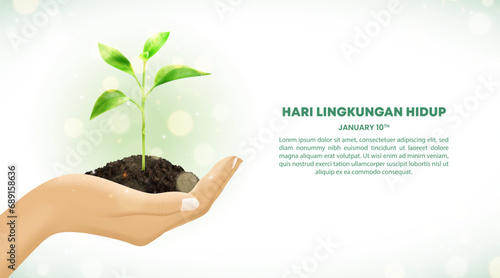 Hari Lingkungan Hidup Nasional or Indonesia National Environment Day with hands and good environment