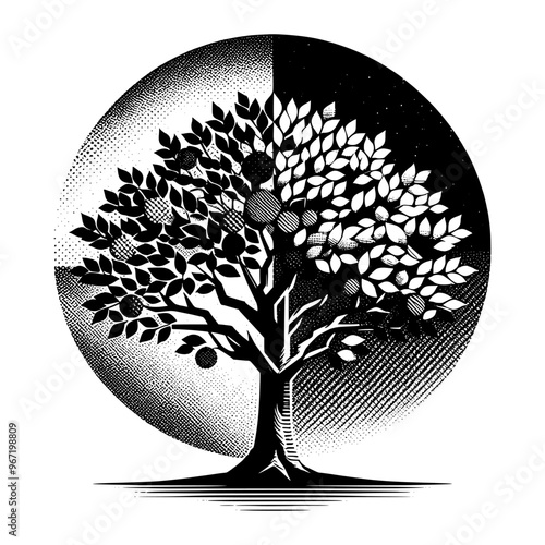 Bare tree silhouette without leaves woodcut engraving vector illustration