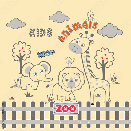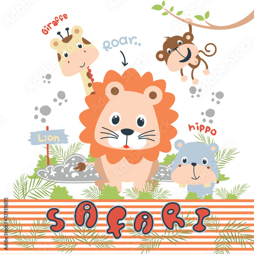 Adorable animals vector illustration playing joyfully in a vibrant forest park with cheerful and whimsical details