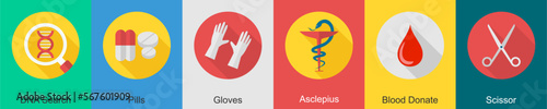A set of 6 Medical icons as doctor serach, doctor on call, health question