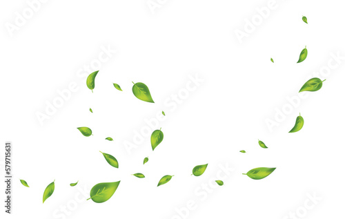Green flying leaves wave. Organic cosmetic background. Natural herbal tea. Vegan, eco, bio design element. Leaf falling. Summer foliage ornament. Beauty product. Healthy food. Vector illustration
