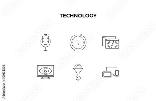 technology outline icons set. thin line icons such as marketing automation, uptime and downtime, data visualization vector. linear icon sheet can be used web and mobile