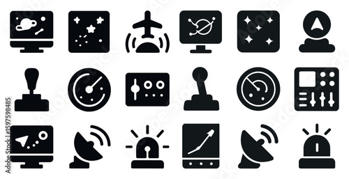 Simulator radar icon airplane grid control space map drone vector aerospace satellite