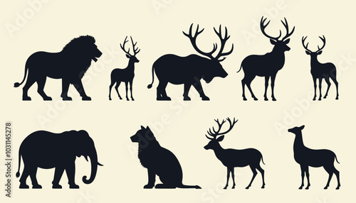 Elephant and Deer Silhouettes Vector Wildlife Animal Graphic Set