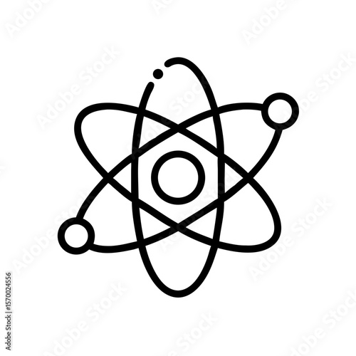 Atom with blue electron shell, red electrons, green protons and gray neutrons. Electrons producing atomic shell, neutrons and protons producing atomic nucleus. Illustration on white background. Vector