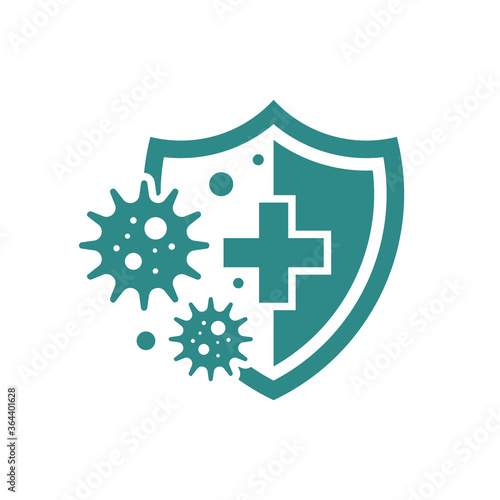 Hygiene shield from germ icon, Immune system logo, Virus protection, Medical treatment and prevention of COVID-19 coronavirus outbreak concept, Isolated on white background, Vector illustration