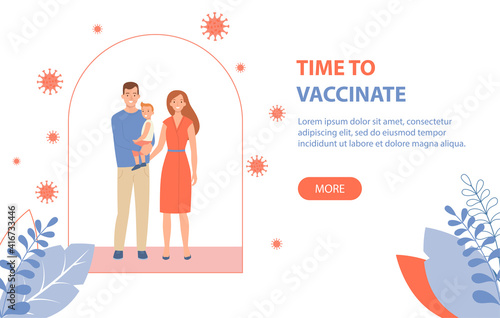 Happy parents with children is protected from viruses and diseases. Good immunity, vaccination and a healthy lifestyle, web-banner. Vector illustration in a flat style.