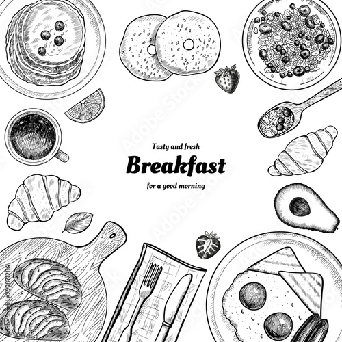 Bagel and sandwich menu food template for restaurant with doodle hand-drawn graphic.