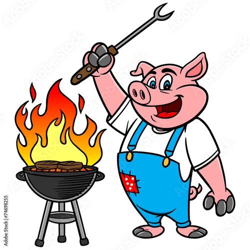 Vintage hipster Grill Barbeque pig pork icon on fire flame invitation party barbecue bbq illustration