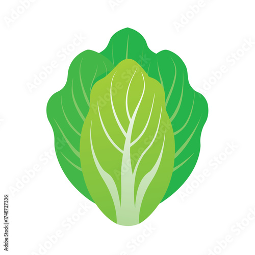 Flat vector illustration of bok choy vegetable. Simple green leafy cabbage icon for food design, healthy eating, restaurant menu, or Asian cuisine concepts.