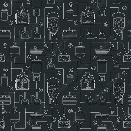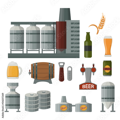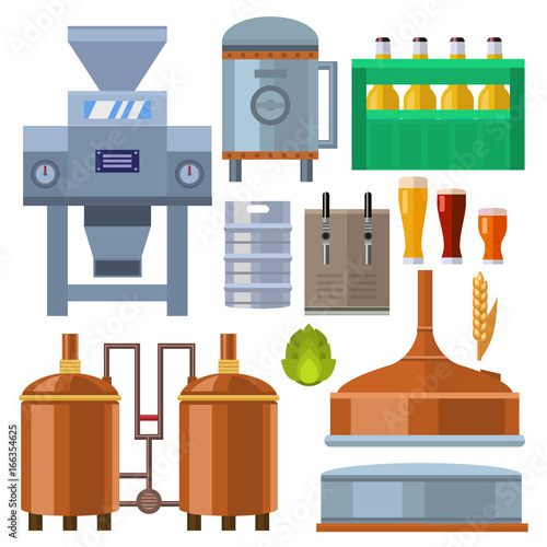Beer brewing process alcohol factory production equipment mashing boiling cooling fermentation vector illustration.