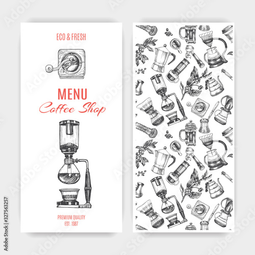 Illustration with an alternative way of brewing coffee. Alternative coffee brewing methods sketch.