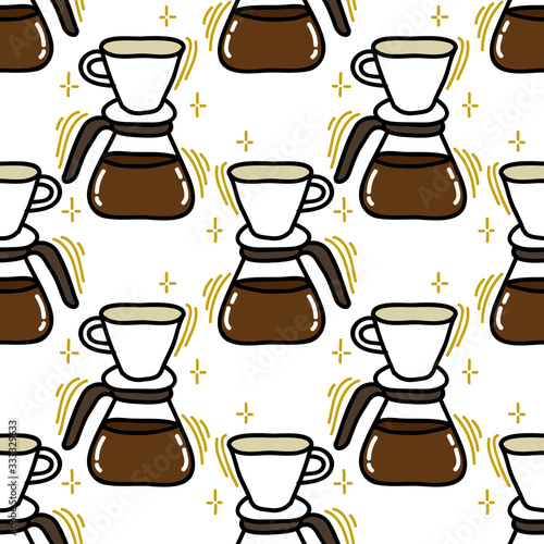 wave pour over coffee maker seamless doodle pattern, vector illustration