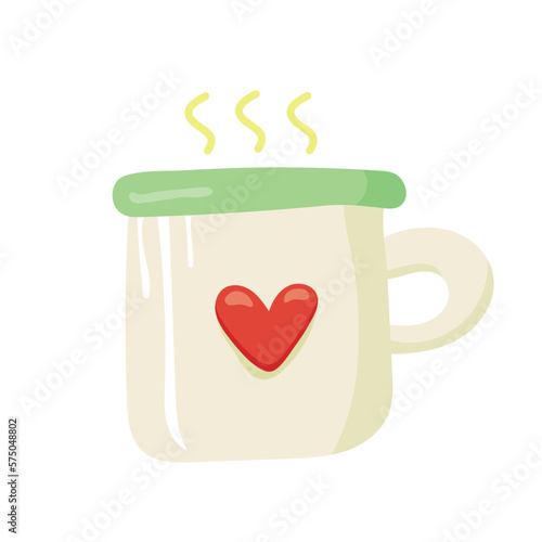 Mug of hot drink with image heart white background. Sticker. Clipart. Vector illustration