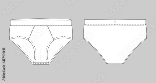 Underwear fashion flat sketch outline technical drawing illustration., front, back, Mockup, CAD, template, Men's, Women's, Unisex.