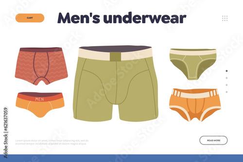 Landing page design template offering variety of men underwear different model of underpants