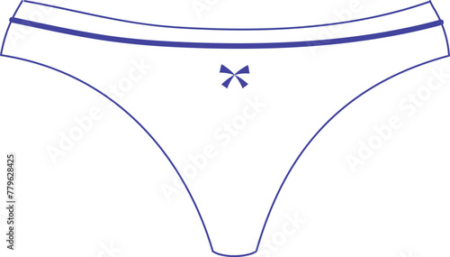 Mid-Rise Thong Underwear Technical Fashion sketch. Women’s Lingerie Vector Template. Front and Back View. Minimal Coverage. Comfortable Fit. Blue and White Color. CAD Mockup Set.