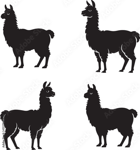 Alpaca silhouettes vector bundle, black shapes in standing poses, farm animal collection, perfect for crafts, design, wildlife themes.