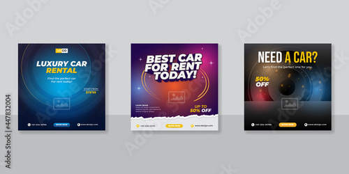 Creative rent a car social media banner design and Instagram post template set for automobile