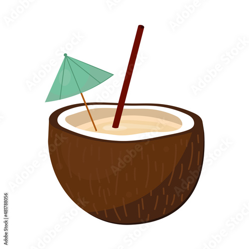 Tropical beach side refreshing drink, flat style icon of coconut juice