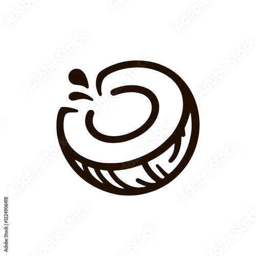 Black and White Coconut Half Silhouette Illustration in Simple Style