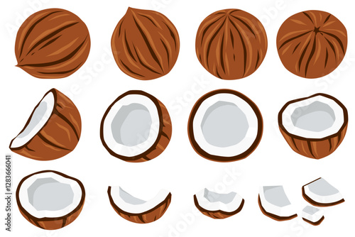 Coconut tropical nut fruit with cut eps10 vector illustration isolated