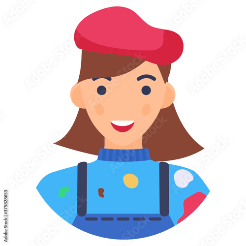 Girl painter character, young professional paint job designer with paintbrush vector Illustration