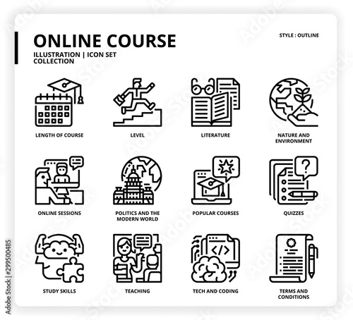 Online education vector icon set.  online courses illustration sign collection.