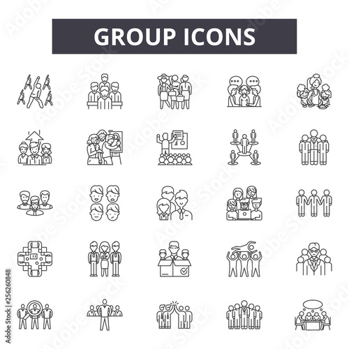 Group line icons for web and mobile. Editable stroke signs. Group  outline concept illustrations