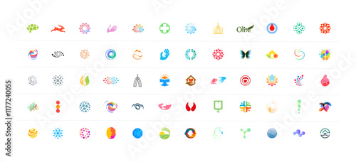 Big logo collection. Modern colorful logo set for diverse industries like health, education, tech, environmen, non-profits, startups, marketing, community, digital platforms, art and culture. Vector