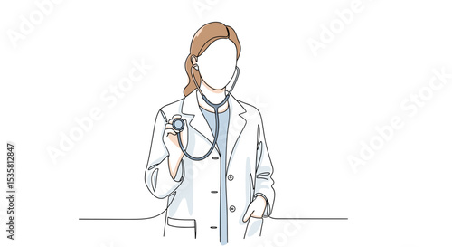 continuous single line drawing of medical doctor taking notes, line art vector illustration