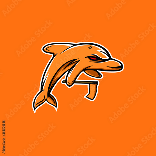 Dolphin mascot logo design vector with modern illustration concept style for badge, emblem and t-shirt printing. Illustration of a dolphin carrying a crystal ball for esports team