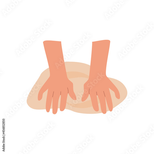 Kneading dough hands icon. Homemade baking. Making sourdough bread. Instruction for baking recipe. Pastry dessert preparation steps. Flat vector cartoon illustration for cookbook.