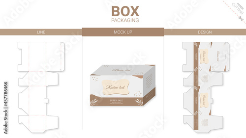 Tissue box die cut template with 3D blank vector mockup for retail packaging