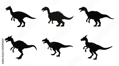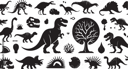 Dinosaur silhouette vector collection, prehistoric animal icon set, black creature graphic pack, extinct species illustration bundle, nature wildlife artwork design