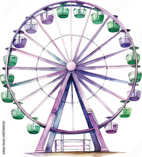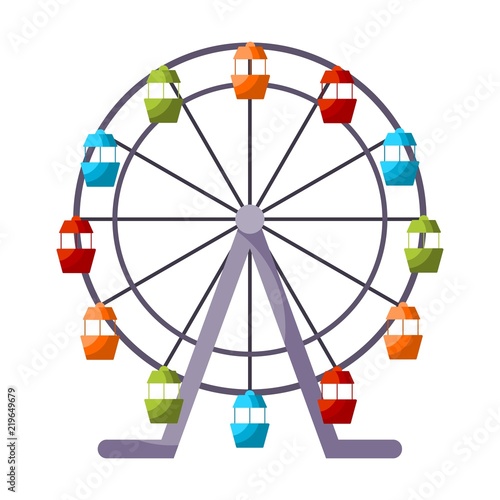 Colorful cartoon ferris wheel illustration in a flat design style, perfect for amusement park, carnival, or fairthemed graphic projects