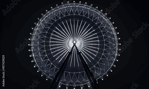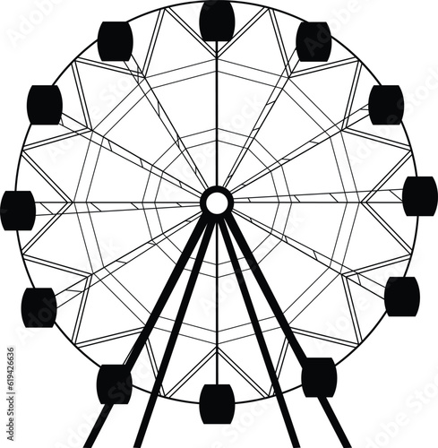 Classic ferris wheel in monochrome style. Carousel of amusement park.