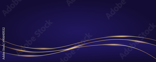 Dark luxury background with gold glowing lines. Navy abstract banner