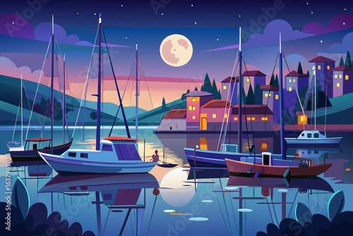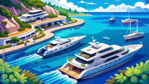 vector illustration of the yachts in the harbor