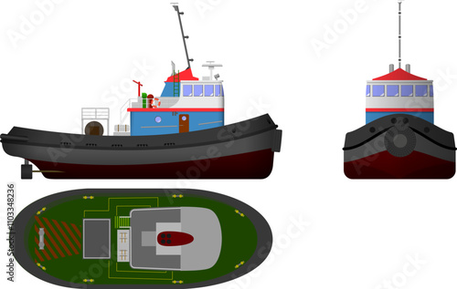 Cargo ship container in the ocean transportation, shipping freight transportation. illustration vector