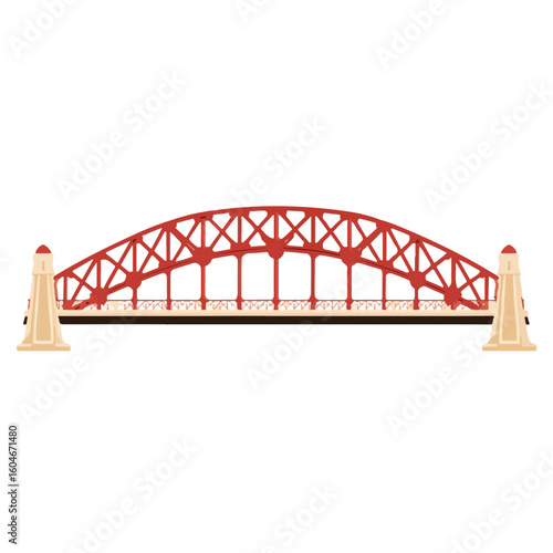 Iconic Steel Arch Bridge Structure Transportation Symbol Engineering Design Landmark Graphic Illustration