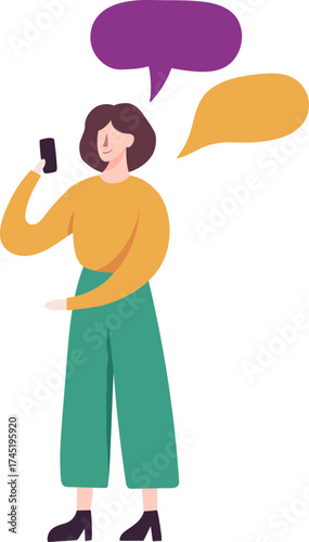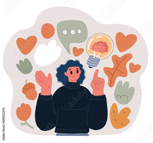 Coffee time, relaxation, cozy concept. Young woman or girl enjoys  having coffee in the morning. Hand drawn style vector design illustrations.