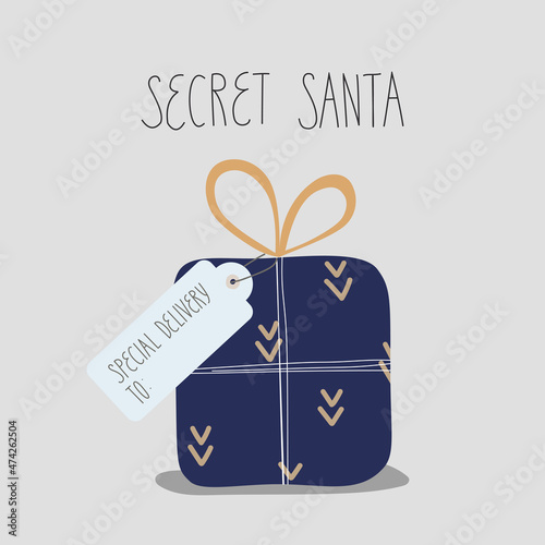 Wen Banner Template, page with vector illustration about Secret Santa event. Gift delivering, text
