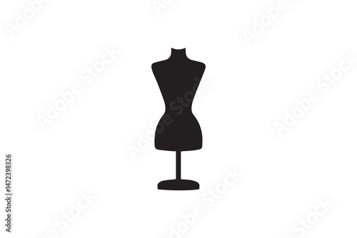 Black mannequin silhouette displaying fashion design and clothing on white background
